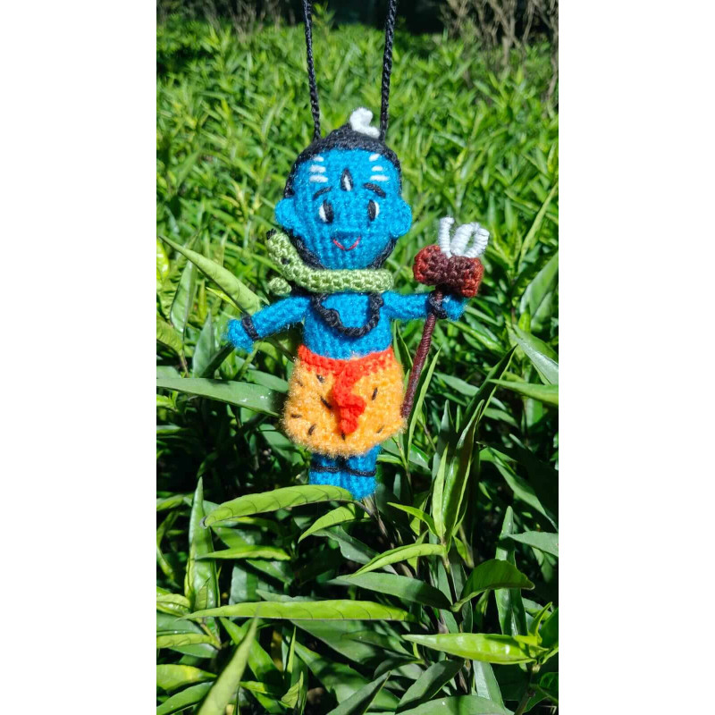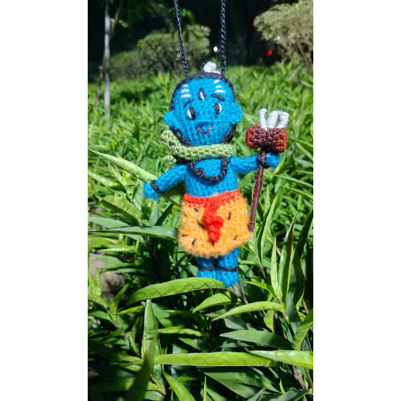The Ekaksha plushie is a spiritually significant accessory specially designed to hang in cars as a protective and auspicious charm. Beyond its soft crochet texture, its details carry profound meaning: the blue skin represents the infinite cosmos, the crescent moon symbolizes the mastery of time, and the Vasuki serpent signifies the conquest of fear. The Trishula represents the balance of cosmic forces, while the Damaru drum echoes the rhythmic pulse of the universe. Perfectly sized for a rearview mirror, this piece brings a sense of divine rhythm and protection to every journey.